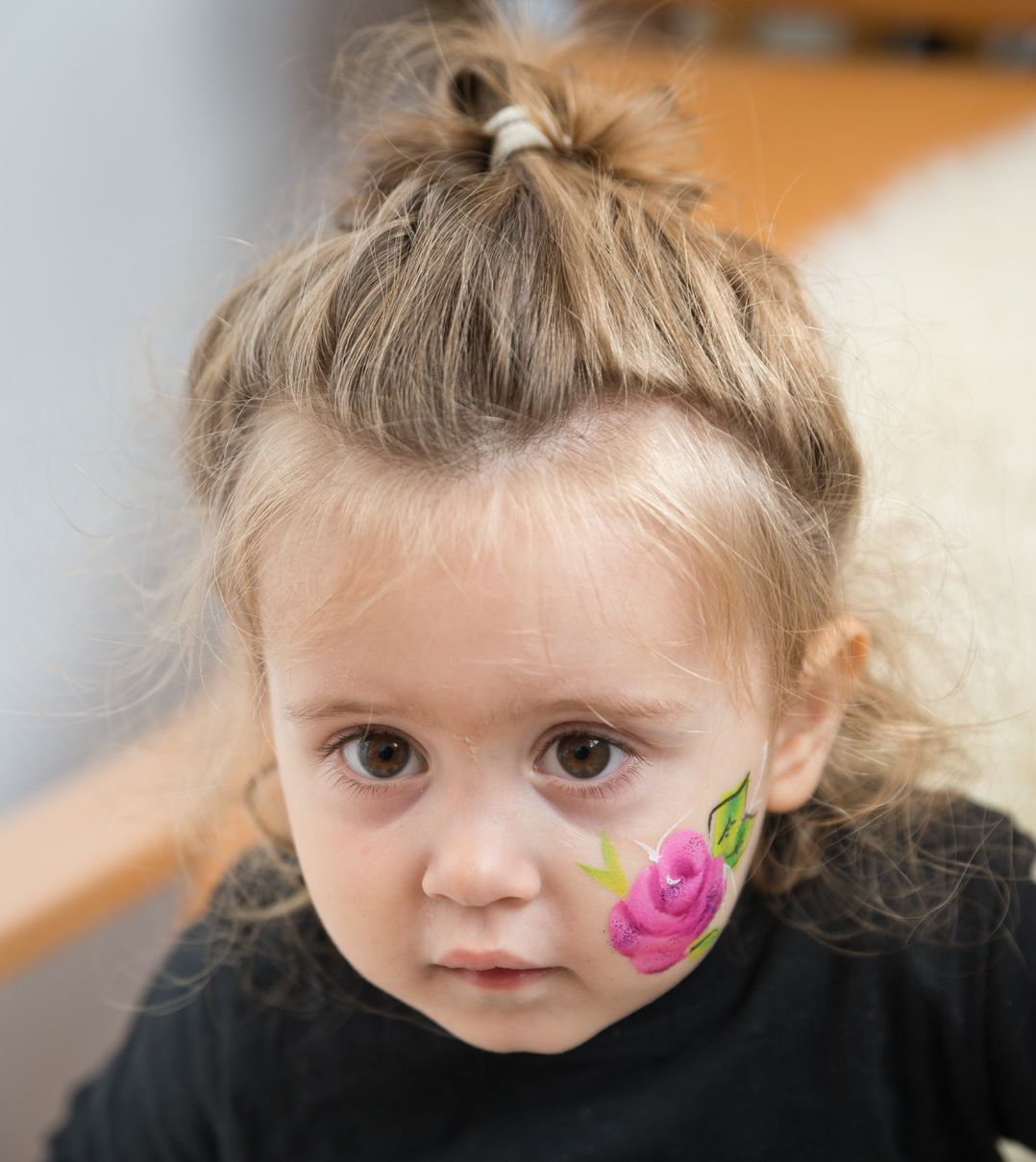 Falls ein Kind auf meinem Stuhl erkältet ist und eine Rotznase hat, wird es im Gesicht nicht geschminkt und bekommt alternativ ein Motiv auf den Arm. Auch die Lippen werden aus hygienischen Gründen mit einem Wattestäbchen geschminkt und nicht mit dem Pinsel.“